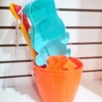 Balde de playa con diseño colorido y divertido