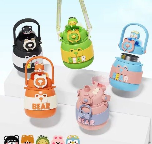 Termos infantiles con diseño de osito, perfectos para colegio, paseos y uso diario.